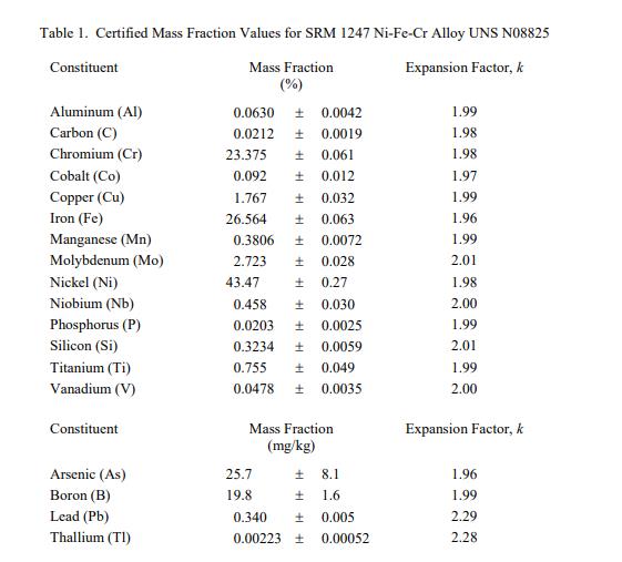 NIST SRM 1247Ni-Fe-Cr合金(標(biāo)準(zhǔn)品) 的認(rèn)證在規(guī)定的測(cè)量不確定度內(nèi)無(wú)限期有效,前提是按照本證書(shū)中給出的說(shuō)明處理和存儲(chǔ) SRM(參見(jiàn)“使用說(shuō)明”)。因此,不需要定期重新校準(zhǔn)或重新認(rèn)證此 SRM。如果 SRM 損壞、污染或以其他方式修改,則認(rèn)證無(wú)效。