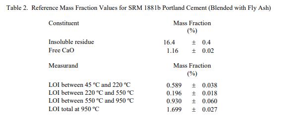 成分和燒失量 (LOI) 的參考值在表 2 中報告為質(zhì)量分?jǐn)?shù)。 NIST 參考值是未經(jīng)認(rèn)證的值,它是基于可用數(shù)據(jù)對真實值的當(dāng)前最佳估計;但是,該值不符合 NIST 認(rèn)證標(biāo)準(zhǔn)并提供相關(guān)的不確定性可能僅反映測量再現(xiàn)性,可能不包括所有不確定性來源,或者可能反映多種分析方法之間缺乏足夠的統(tǒng)計一致性 [2]。