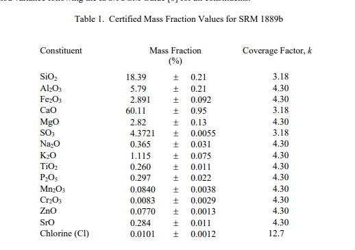 SRM 1889b 成分的認(rèn)證值在表 1 中報告為收到時的質(zhì)量分?jǐn)?shù) [1]。 NIST 認(rèn)證值是 NIST 對其準(zhǔn)確性具有最高置信度的值,因為所有已知或可疑的偏差來源都已被調(diào)查或考慮在內(nèi) [2]。認(rèn)證值是根據(jù) NIST 和合作執(zhí)行的分析結(jié)果對真實值的當(dāng)前最佳估計使用表 4 中列出的儀器和經(jīng)典測試方法的實驗室。