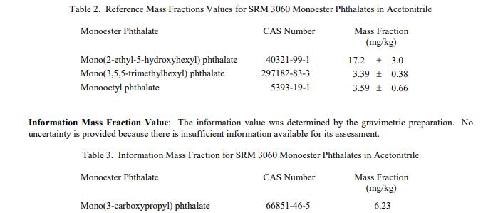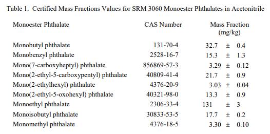 產(chǎn)品名稱:標(biāo)準(zhǔn)參考物質(zhì) NIST SRM 3060 - 鄰苯二甲酸單酯在乙腈中的應(yīng)用
