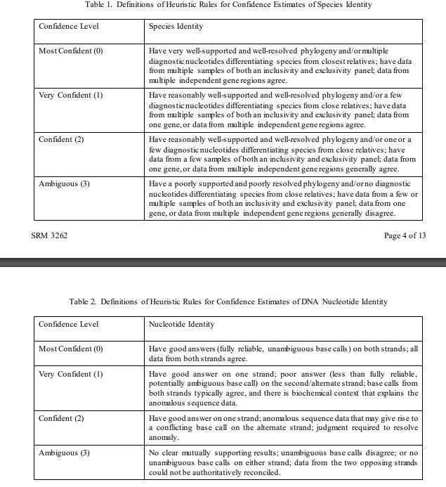 分類學特征是貫葉連翹 L。通過由受過訓練的植物學家使用來自原始材料的植物標本和來自植物學驗證的貫葉連翹 L 的相關 DNA 序列分析確定。相關的 DNA 序列可在隨附的 FASTA 格式文件中獲得[1]。與序列中每個核苷酸相關的不確定性,進而與作為物種標識符的 DNA 序列相關的不確定性以表示規定值的置信度估計的序數標度表示(表 1 和表 2)[2]。這些 DNA 序列被用作貫葉連翹的身份數據來源。